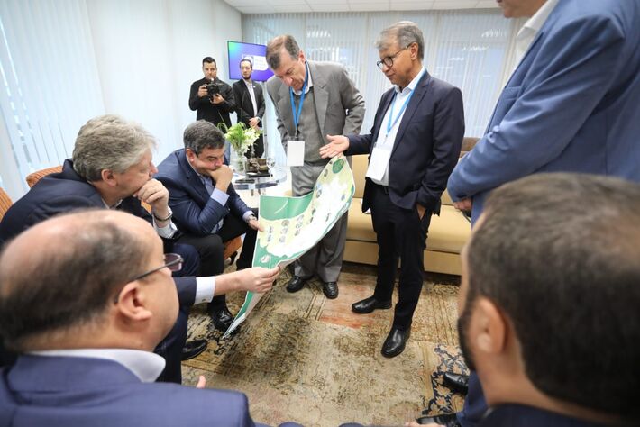 O governador Eduardo Riedel participou, ao longo do dia, de reuniões com líderes e executivos, além de mostrar as potencialidades econômicas, indicadores, programas, projetos de infraestrutura, modais e demais informações à atração e tomada de decisão do capital privado na hora de investir em Mato Grosso do Sul.