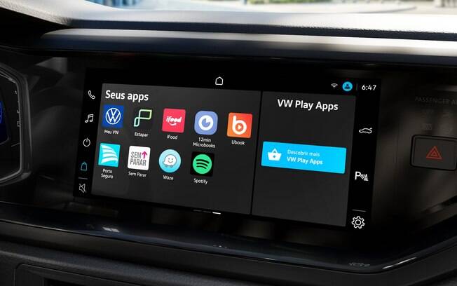 O recurso da VW já traz o app de música Spotify e, em breve, os novos apps Get In, para reservas em restaurantes, e MobiMax , para assistir TV digital na tela de 10,1 polegadas (com o veículo parado). Além de apps para navegação, estacionamento, seguro, pedágio, áudio livros etc. Além do app de música, há também os já conhecidos, como iFood, Porto Seguro, Estapar, Ubook, Waze e 12 Minutos.