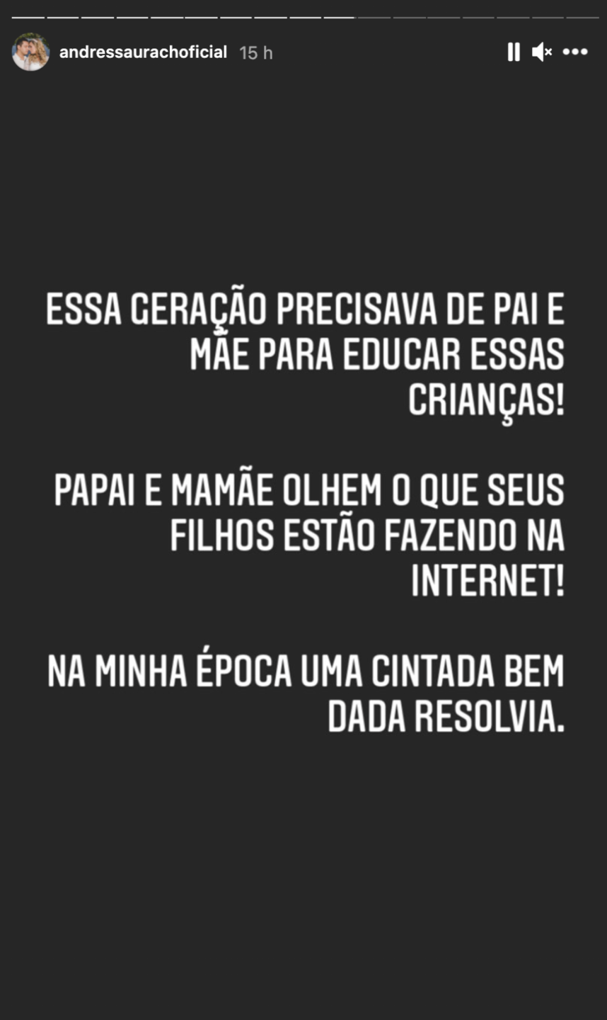 E, acrescentou: “Essa geração precisava de pai e mãe para educar essas crianças! Papai e mamãe olhem o que seus filhos estão fazendo na internet!".