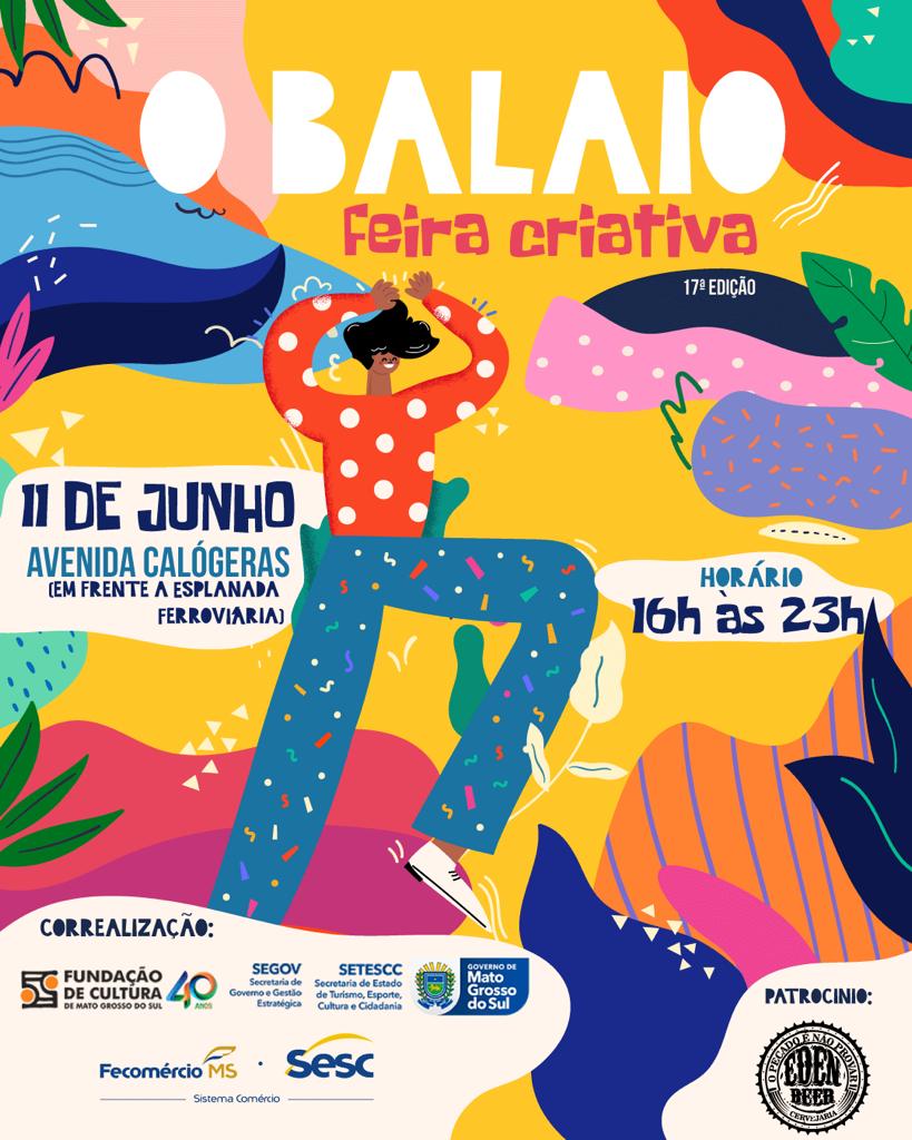 Nascida em Dourados (MS), a feira 'O Balaio' acontece pela 2ª vez na Capital neste domingo (11.jun.23). Agora a feira terá 180 espositores e show nacional, das 16h às 23h, na Avenida Calógeras, em frente à Esplanada Ferroviária. Esse texto saiu originalmente no TeatrineTV.