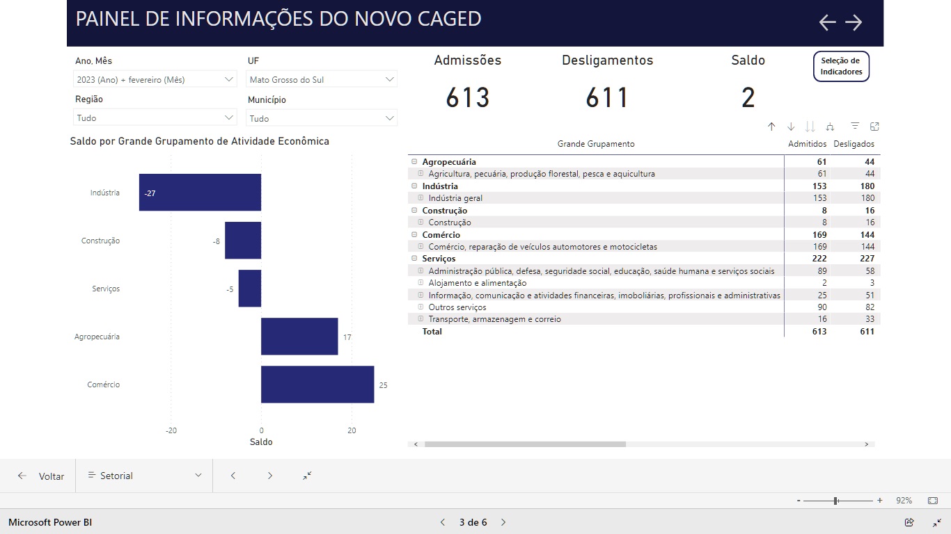 DETALHAMENTO DE DADOS DO CAGED PARA JANEIRO E FEVEREIRO EM MS