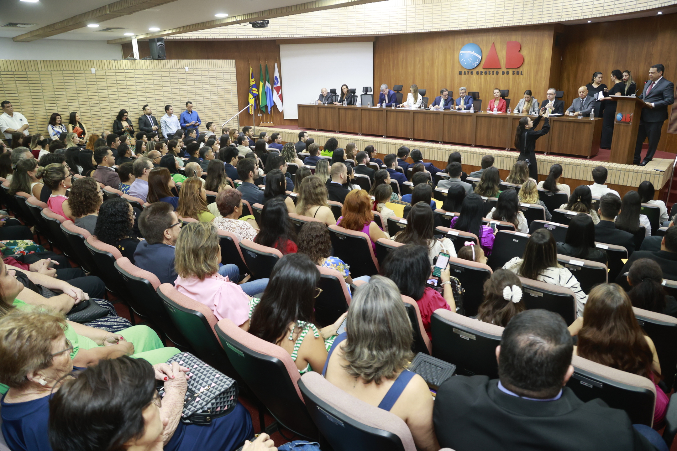 No dia 25 de outubro pela manhã, a Seccional Mato Grosso do Sul da Ordem dos Advogados do Brasil recebeu 61 advogados e advogadas e seis estagiários em uma sessão solene de entrega de carteiras no auditório da instituição.
