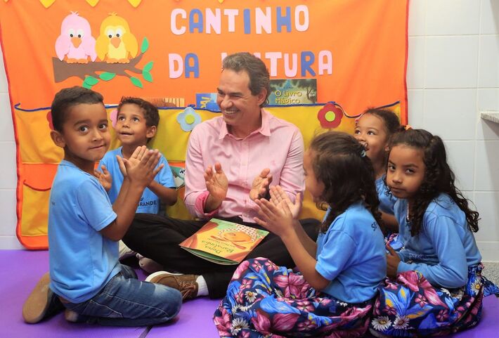 O prefeito e crianças durante solenidade. Outra novidade é a inclusão de turmas de berçário. Com isso, a nova EMEI atenderá o quadro completo da Educação Infantil, abrangendo do grupo 1 (antigo berçário) até o grupo 5 (Pré-Escola) , que é de crianças de zero a cinco anos.