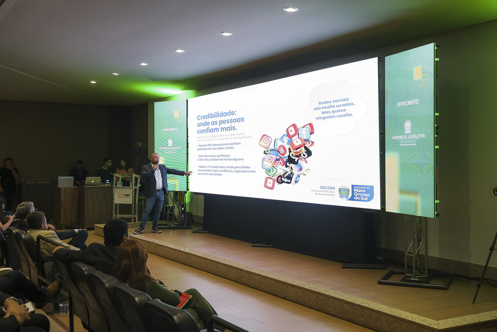 Promovido pela Associação das Emissoras de Rádio e Televisão de MS (MIDIACOM MS), o evento teve como um de seus pontos altos a apresentação de Frederico Souza, secretário executivo de comunicação do estado. Ele divulgou dados de um extenso levantamento contratado pelo Governo do Estado, que realizou mais de 30 mil entrevistas em todos os 79 municípios sul-mato-grossenses entre 2023 e 2024.