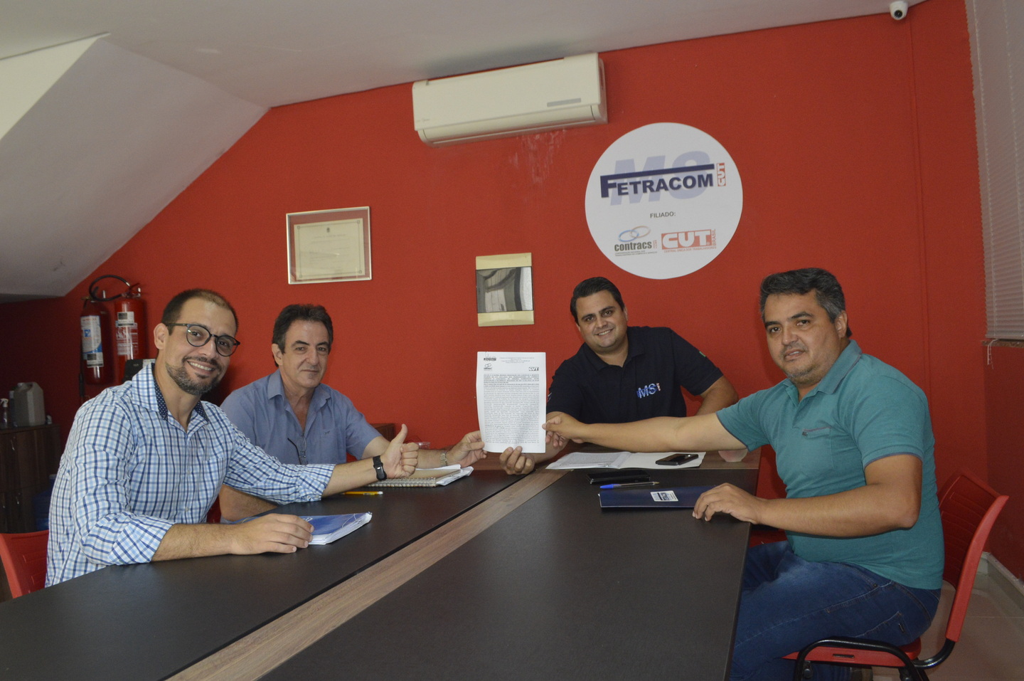 O presidente da Fetracom, Douglas Silgueiro e o secretário geral da entidade, Clodoaldo Fernandes Alves se reuniram com o presidente do Sindsuper, Luiz Tadeu Gaedicke e o assessor jurídico da entidade patronal, Dr. João Luiz Rosa Marques, oportunidade em que assinaram o acordo entre as entidades. Participaram das negociações também, os seguintes empresários: Edmilson Jonas Verati e Denyson Queiroz Prado, presidente da Associação Sul-mato-grossense de Supermercados – AMAS.