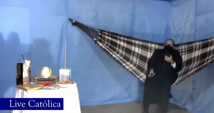 O padre Gleiber Dantas, da paróquia São Sebastião, no município de Florânia, a 216 km de Natal, viralizou na web após fazer um leilão virtual se balançando em uma rede. A live foi realizada na noite de segunda-feira (31), nas redes sociais do Santuário de Nossa Senhora das Graças, dentro das comemorações à santa, padroeira da cidade.