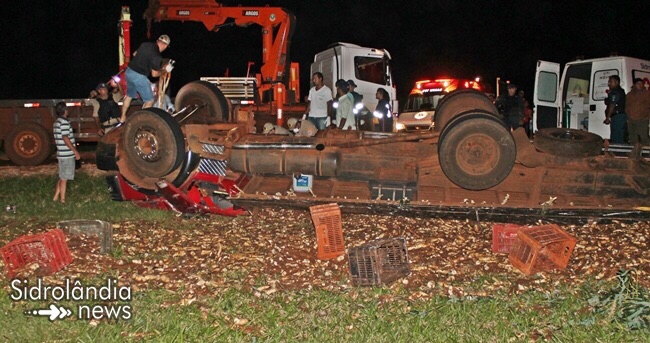 Conforme informações da PRF (Polícia Rodoviária Federal), o acidente ocorreu por volta das 19h quando o caminhão, que vinha de Nioaque com destino à Capital, carregado de mandioca, capotou ao fazer contorno na rotatória na entrada de Sidrolândia. Tanto o motorista, quanto o passageiro ficaram presos às ferragens. P