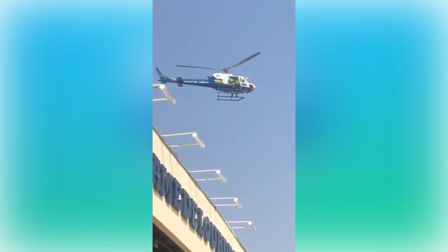 Vídeos que circulam nas redes sociais nesta quinta-feira (2.ago) mostra um helicóptero do Centro Integrado de Operações Aéreas (Ciopaer) com uma bandeira do Brasil sobrevoando o Colégio Notre Dame de Lurdes, em Cuiabá (MT). O caso ocorreu após a suspensão de uma professora que fez comentários negativos sobre o presidente Jair Bolsonaro (sem partido), em relação a política ambiental, dentro da sala de aula.