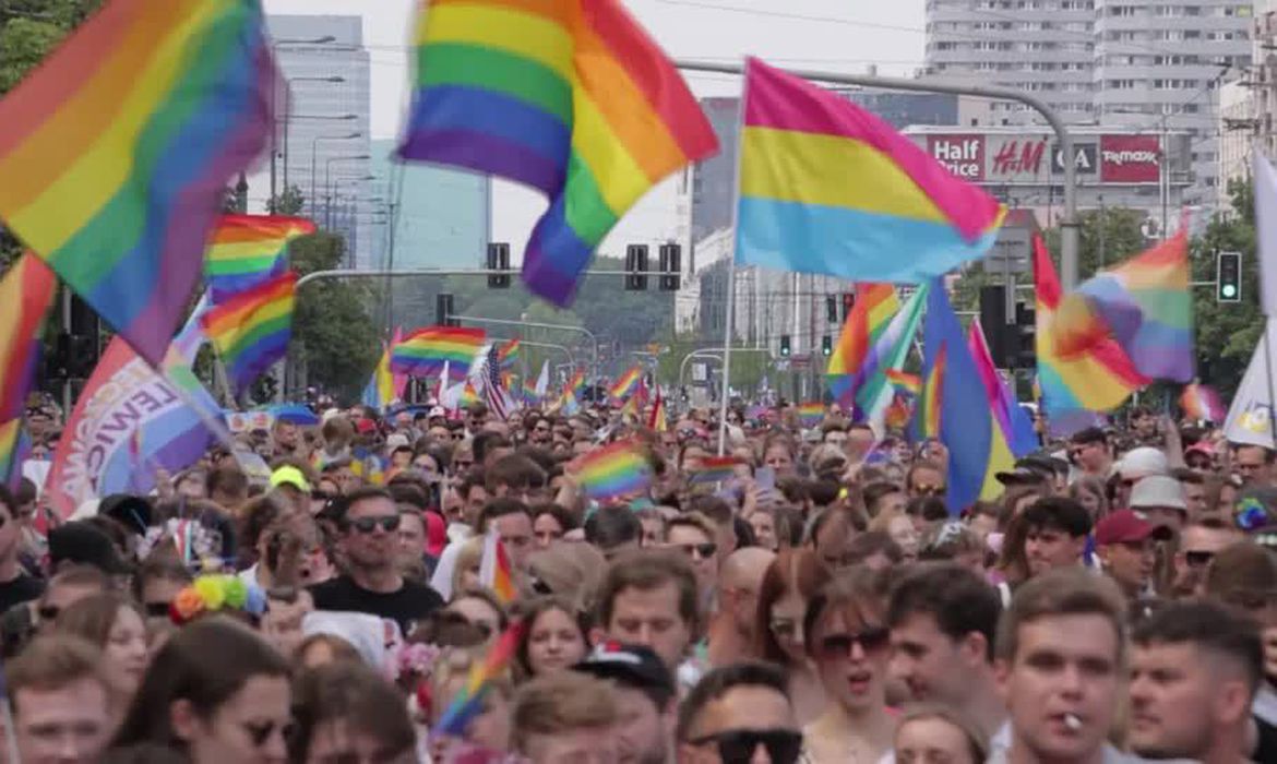 Dezenas de milhares de pessoas marcharam pelas ruas de Varsóvia neste sábado (17) para exigir igualdade para a comunidade LGBTQ, que está de olho nas próximas eleições polonesas, nas quais os direitos homossexuais podem ter papel importante.