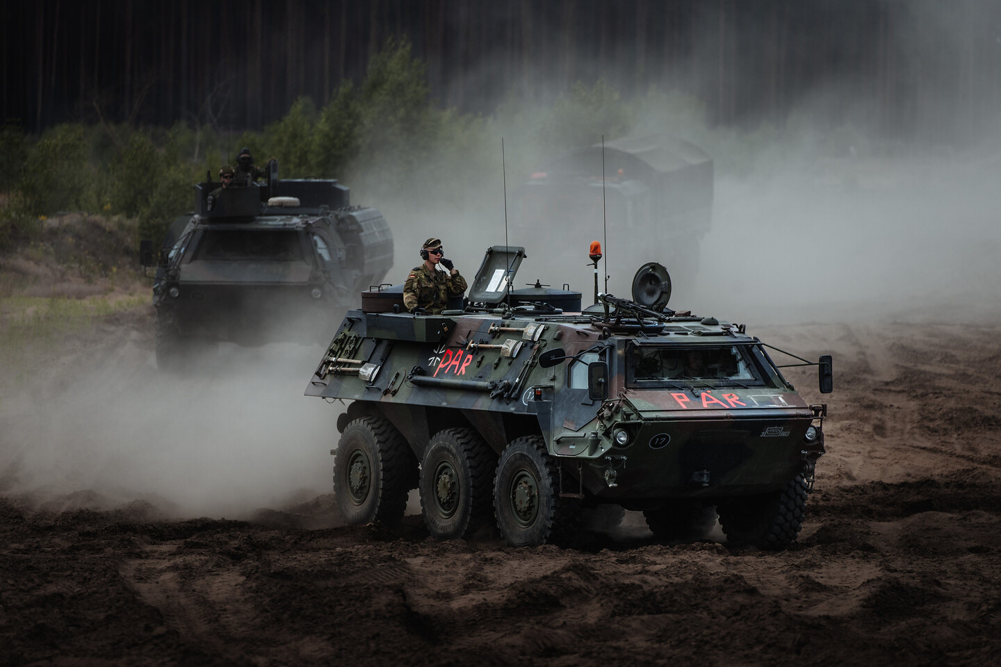 Soldados participam do exercício binacional Griffin Storm com o tanque desminagem Keiler na área de treinamento militar de Pabrade/Lituânia, em 25 de junho de 2023. Foto: Bundeswehr/Lea BacherleEm nota, a Otan disse quem o objetivo do exercício é melhorar a capacidade de resposta das forças aliadas em situações de conflito, além de promover a cooperação entre os países participantes.