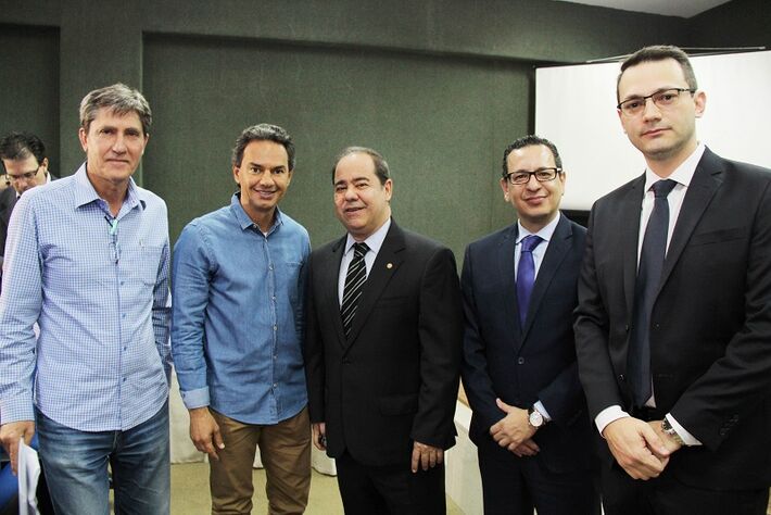 Compuseram a mesa as seguintes autoridades: Paulo Cezar dos Passos, Procurador-Geral de Justiça do MPMS; Antonio Siufi Neto, Corregedor-Geral Substituto do Ministério Público e Coordenador do Centro de Apoio Operacional das Promotorias de Justiça do Patrimônio Público e Social; Marcelo Augusto Santos Turine, Reitor da UFMS; Adriano Lobo Viana de Resende, 29º Promotor de Justiça do Patrimônio Público da Capital; Marcos Marcello Trad, Prefeito Municipal; Rudi Fiorese, Secretário Municipal de Infraestrutura e Serviços Públicos; Daniel Anijar de Matos, Professor do curso de Engenharia Civil da Universidade Federal de Mato Grosso do Sul.