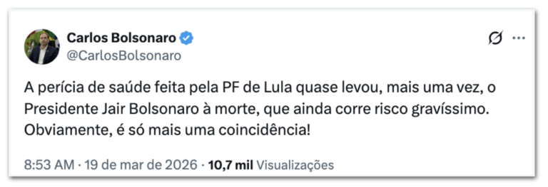 Em resposta as mentiras de Carlos, o hospital divulgou boletim na 5ª.feira (19.mar.26) indicando evolução positiva da saúde do ex-presidente.