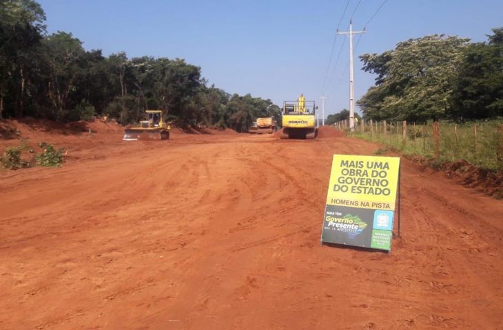 Depois de concluídos quatro quilômetros de limpeza, a obra de pavimentação da MS-357 avança com os serviços de terraplanagem que já foram executados, parcialmente, em três quilômetros da rodovia que recebe investimento de R$ 22.292.519,28, do Governo do Estado.