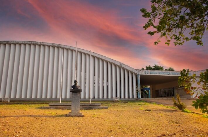 Única obra projetada por Oscar Niemeyer na Capital, a Escola Estadual Maria Constança de Barros Machado está situada na Rua Marechal Cândido Mariano Rondom, n° 451 - Bairro Amambaí. Foi inaugurada em 26 de agosto de 1954. Segundo o arquiteto Ângelo Marcos Arruda, é um "marco da arquitetura moderna em Campo Grande. Originalmente a escola foi projetada para ser construída na cidade de Corumbá, mas por determinação do governador Fernando Correa da Costa, a obra foi edificada em Campo Grande. O lote onde o edifício foi implantado é um quarteirão de 12.000 m² de formato retangular. Enquanto que o terreno em Corumbá era plano, o de Campo Grande possuía uma inclinação em torno de 4 metros, tirado do ponto mais alto, na Rua Perseverança até seu ponto mais baixo, na entrada principal pela Rua Cândido Mariano Rondon. Tal situação altimétrica contribuiu para uma implantação usando platôs de construção para cada um dos blocos que compõem o edifício educacional. O projeto de Niemeyer optou por uma composição multivolumétrica, com diversas partes que, unidas por elementos de arquitetura passarelas cobertas, circulações, pisos formam um todo arquitetônico". O renomado arquiteto buscou inspiração nas formas de objetos escolares, tais como borracha, livro, giz e régua para a concepção do projeto. Possui o nome da educadora Maria Constança de Barros Machado, pioneira na educação sul-mato-grossense.