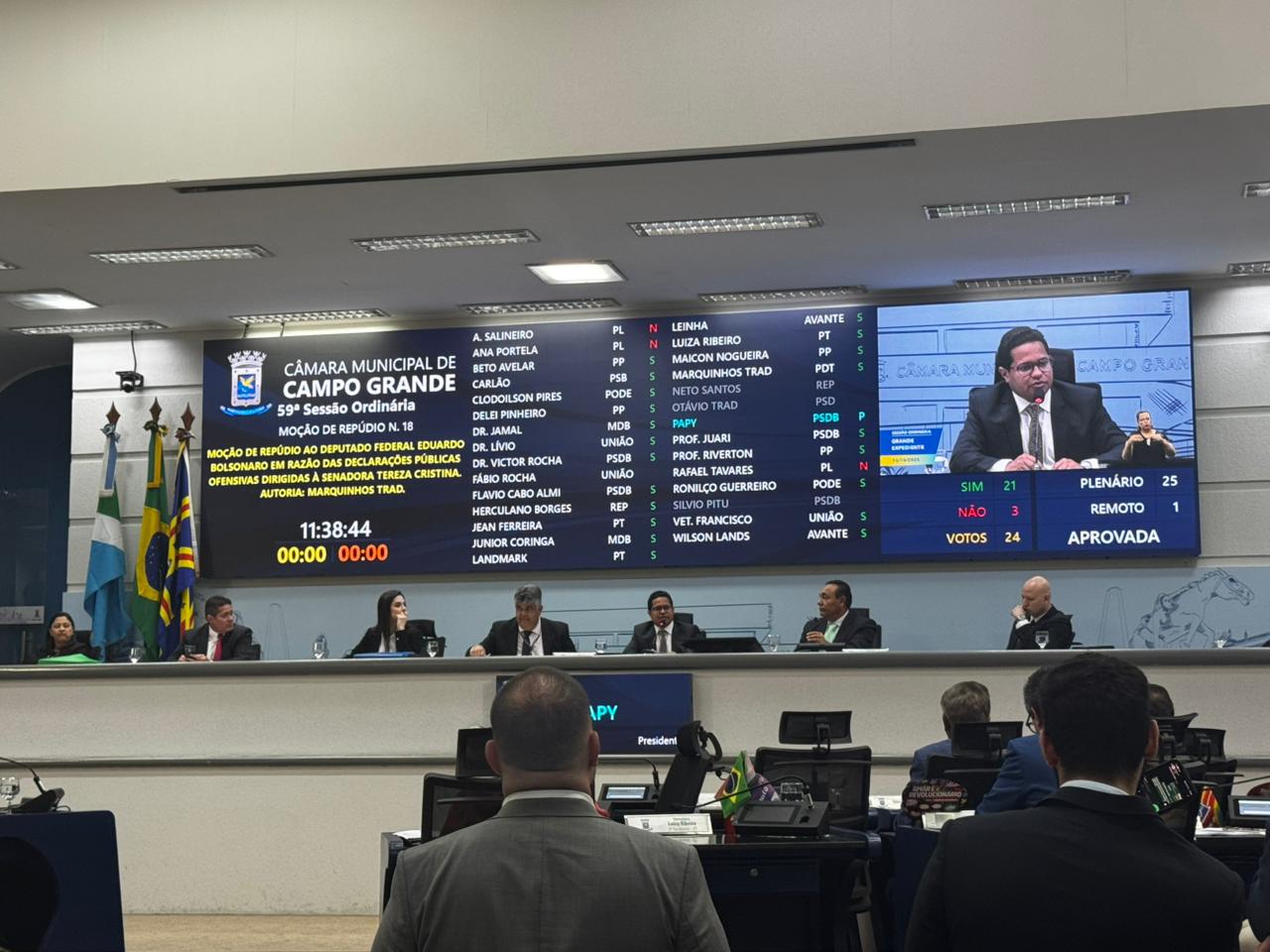 O vereador Landmark Rios (PT) disse que votou a favor da moção de repúdio a Eduardo "por entender que a senadora Tereza Cristina presta um relevante serviço a Mato Grosso do Sul".