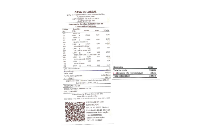 Uma semana depois, na Churrascaria Estrela do Sul, outra nota robusta: R$ 370,00.