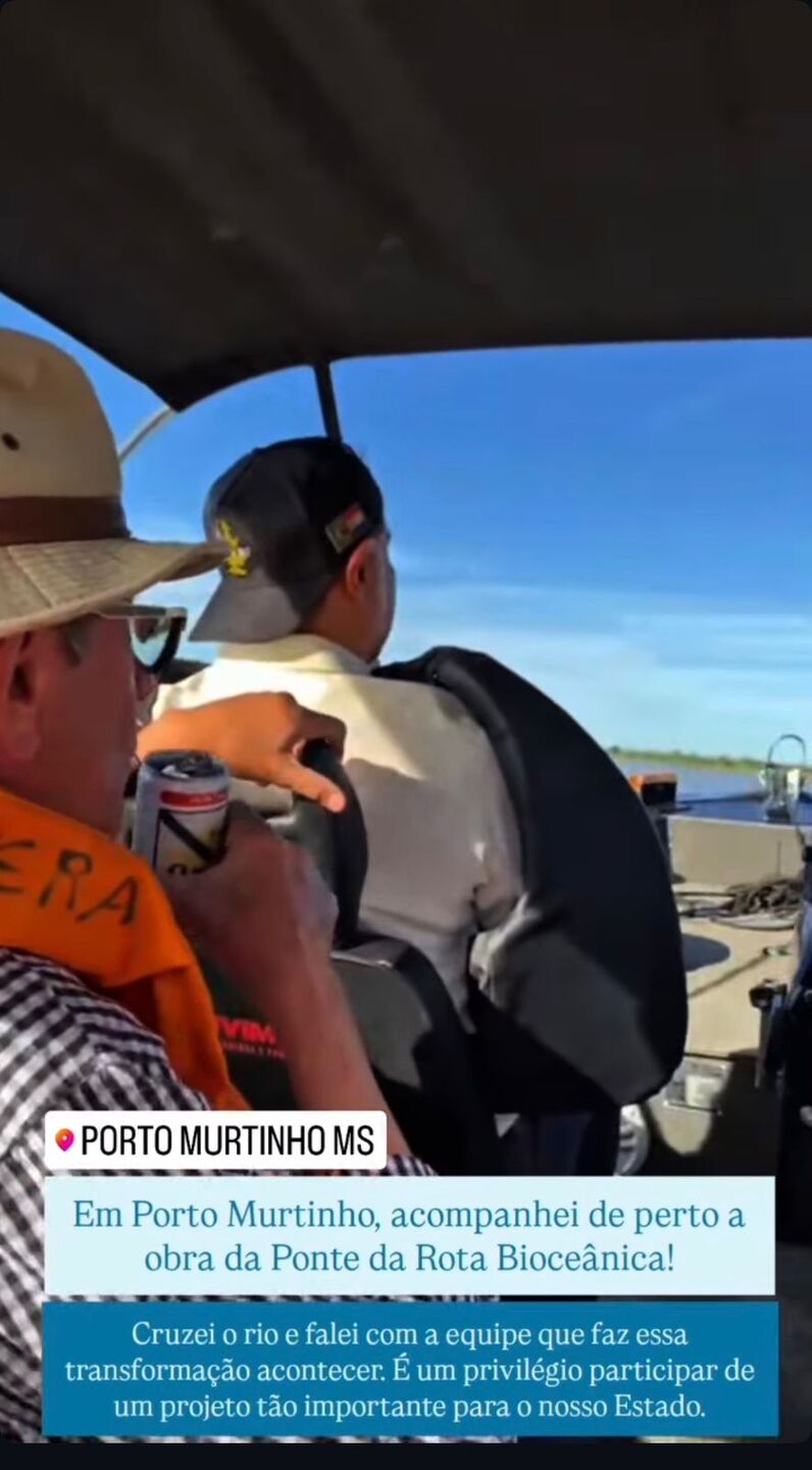 A comitiva seguia para o lado paraguaio do rio, onde ocorre a visita técnica às obras da ponte que integrará a Rota Bioceânica um dos principais projetos de infraestrutura da região. A foto, entretanto, rapidamente circulou entre moradores e provocou críticas sobre a postura do prefeito durante o expediente de trabalho e em agenda oficial.