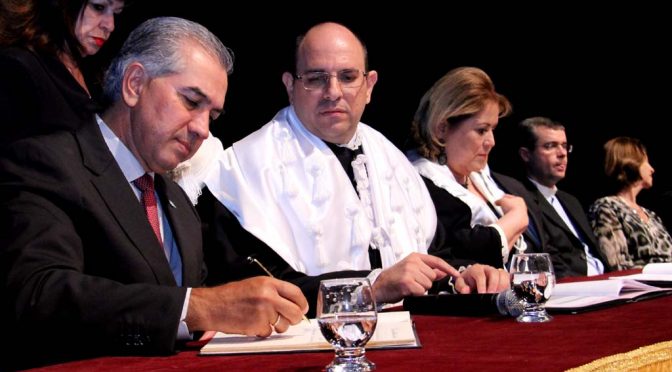 Assumindo compromisso de ética, austeridade, responsabilidade e prometendo seguir o exemplo do Governo do Estado na transparência, o professor Marcelo Turini tomou posse na noite desta terça-feira (8) no cargo de reitor da Universidade Federal de Mato Grosso do Sul (UFMS). O evento lotou o Teatro Glauce Rocha, teve a presença do governador Reinaldo Azambuja e, entre dezenas de autoridades, do presidente do Conselho Nacional de Desenvolvimento Científico e Tecnológico (CNPq), Mário Neto Borges.