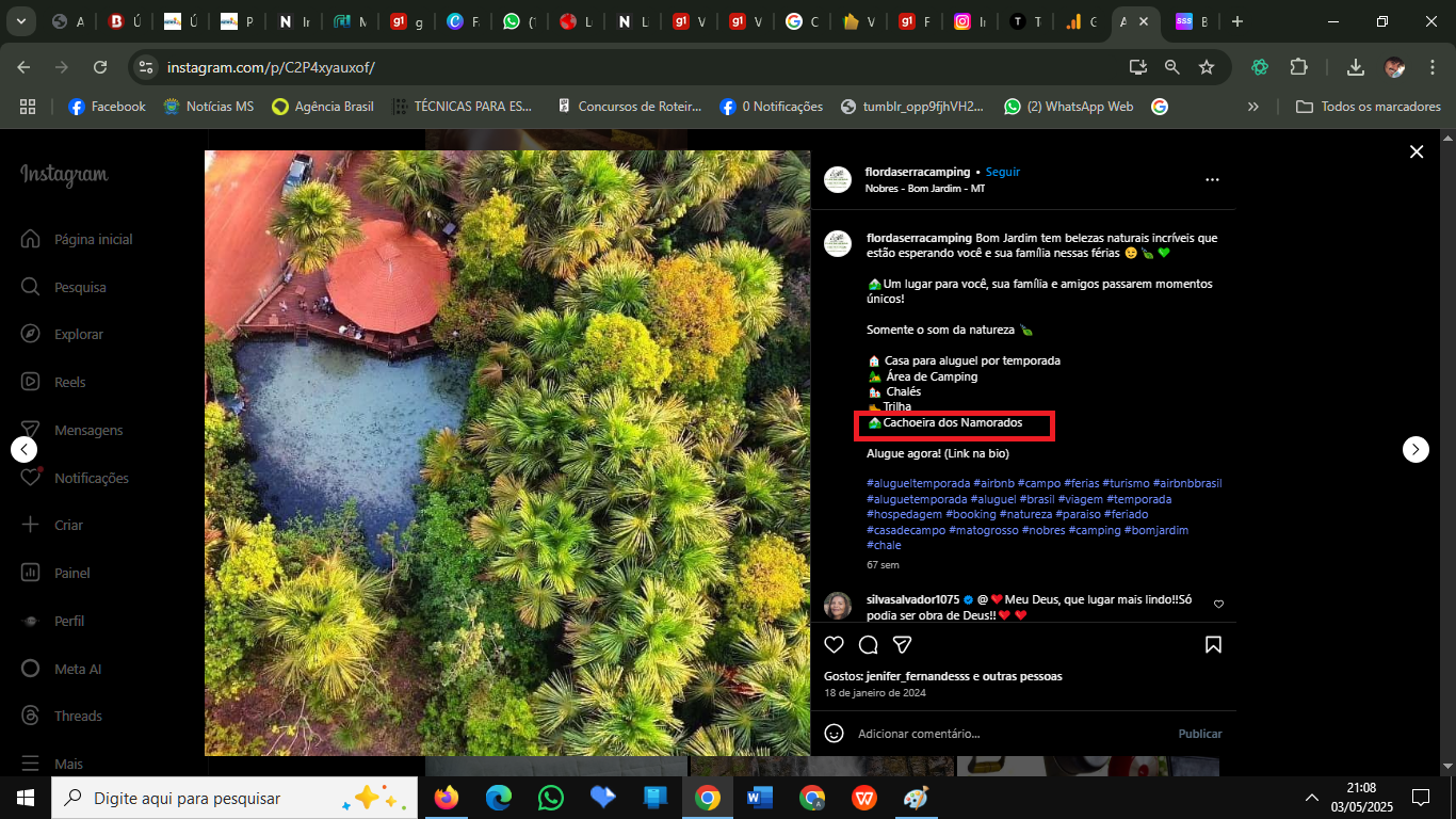 Camping de vereador oferece como atrativo turístico a Cachoeira dos Namorados, que pertence ao Parque Estadual da Gruta Lagoa Azul. Foto: ReproduçãoSegundo a Polícia Militar, tanto Arquimedes quanto Agostinho são responsabilizados por impactos ambientais.