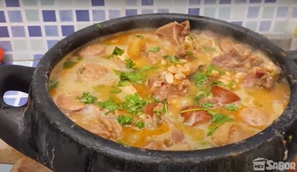 Adicione a água em uma panela de pressão, o feijão, a carne seca, a linguiça, a calabresa e termine de cobrir com agua se necessário for, coloque no fogo médio sem a tampa