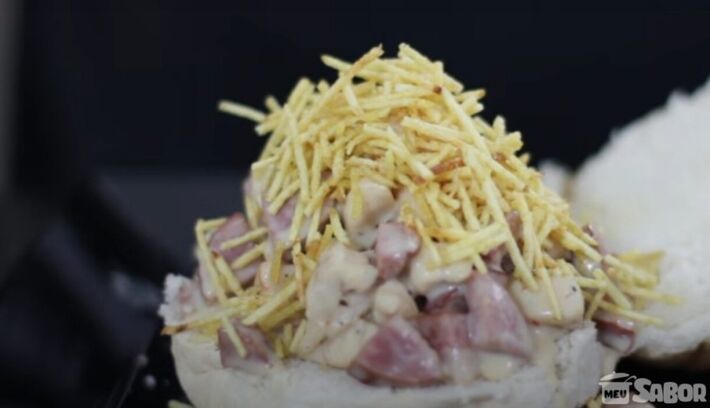 A- A+ Ingredientes 300 gramas de peito de frango cortado em cubos Sal a gosto Pimenta-do-reino a gosto Pimenta calabresa a gosto Orégano a gosto Óleo a gosto 1 calabresa picada 1 pote de requeijão 2 pães de hambúrguer Batata palha a gosto Modo de preparo Em uma tigela, tempere o frango com sal, pimenta, orégano e misture bem, deixe marinar por 15 minutos. Em uma frigideira, aqueça o óleo e frite o frango até dourar, logo em seguida adicione a calabresa Assim que dourar tudo, acrescente o requeijão, misture até ficar tudo cremoso e apague o fogo Corte os pães ao meio e coloque o recheio, finalize com batata palha Dicas do Cheff Conte-nos como ficou sua receita, poste fotos, marque e siga-nos no instagram use a #ReceitasMeuSabor. Fonte: Meu Sabor