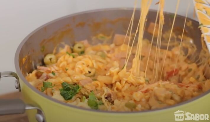 Cozinhe o macarrão conforme as instruções da embalagem, escorra e reserve