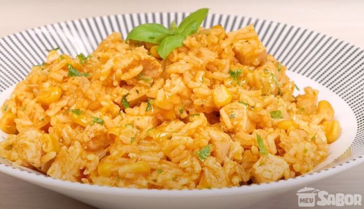 A- A+ Ingredientes 1 colher de sopa de manteiga Azeite a gosto 2 peitos de frango em cubos 1/2 cebola 2 dentes de alho 3 colher de sopa de extrato de tomate 1 colher de sobremesa de curry Pimenta-calabresa a gosto 2 xícara de chá de arroz 4 xícara de chá de caldo de galinha 1 xícara de chá de milho Sal a gosto 2 colher de sopa de creme de leite Cheiro-verde a gosto Modo de preparo Adicione na panela de pressão a manteiga, o azeite, o peito de frango e deixe refogar por dez minutos Logo após, adicione a cebola, alho, extrato de tomate, curry, pimenta e cozinhe pelo mesmo tempo Agora adicione o arroz, o caldo de galinha, milho, sal, creme de leite e tampe a panela Assim que pegar pressão, conte sete minutos e desligue; Finalize com cheiro-verde! Dicas do Cheff Conte-nos como ficou sua receita, poste fotos, marque e siga-nos no instagram use a #ReceitasMeuSabor. Fonte: Meu Sabor