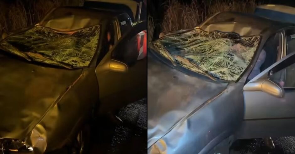 Dois homens ficaram feridos após o carro em que estavam colidir com um boi que atravessava a pista na madrugada deste sábado (2.ago.25), na 12ª linha, no distrito de Lagoa Bonita, zona rural de Deodápolis. O acidente ocorreu por volta da 1h.