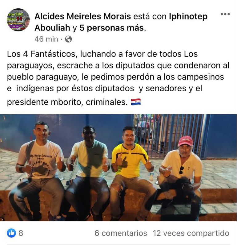 As eleições suplementares estão marcadas para domingo (03.out.2021) e o candidato comemorava com José Fleitas, com o advogado Ricardo Villalba, além do também candidato à vereador, Alcides Meireles, segundo o portal Última Hora.