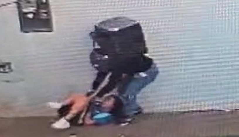 Câmeras de segurança registraram o momento em que a criminosa aborda duas meninas na rua e rouba os pertences de uma delas, fugindo com um comparsa em uma motocicleta vermelha.