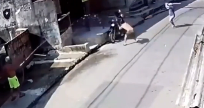 Um casal de jovens tentou cometer um roubo na rua Tupiniquim, no bairro Cidade Nova, na Zona Norte de Manaus, mas acabou sendo agredido por moradores da área. O fato ocorreu na manhã de sábado (5.set.2020), por volta das 9h09. Toda a ação foi filmada por câmeras de segurança da via pública e virou meme nas redes sociais. Isso porquê os moradores reagiram de diversas formas. Além de um que atingiu o jovem com pauladas, outro tentou acertá-los com jatos d'água e gritos. A ação foi filmada por câmeras de segurança da via pública e virou meme nas redes sociais