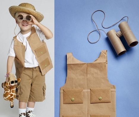A fantasia de safári tem a vantagem de reciclar materiais que você tem em casa e ainda envolver as crianças na confecção de uma fantasia sustentável.