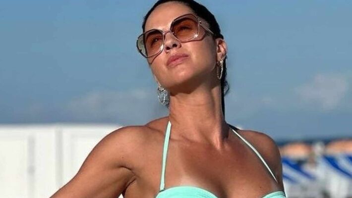 Usando um biquíni azul, fio dental, a morena esbanjou boa forma e beleza natural ao posar caprichando no carão. Além de curtir um solzinho tomando um sorvete, a morena ainda curtiu um passeio de bicicleta.