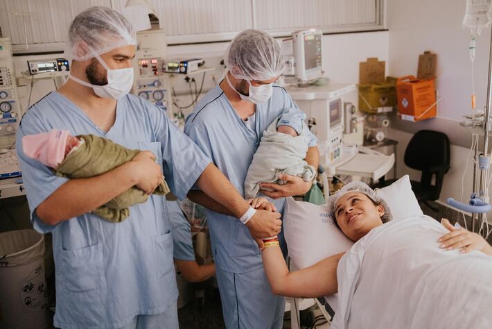 O casal Gustavo Catunda de Rezende e Robert Rosseló Garcia são os primeiros pais brasileiros a terem filhos gerados com material genético de dois pais. A prima de Gutavo, Lorenna Rezende, foi a barriga solidária que deu à luz aos gêmeos na noite da última 3ª.feira (22.fev).